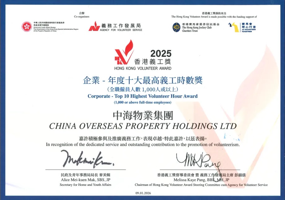 中海物业集团获得“企业-年度十大最高义工时数奖(全职雇员人数1,000人或以上)”,“企业-义工时数卓越金奖” 麻豆影视高清,旗下美博工程获得“企业-年度十大最高义工时数奖(全职雇员人数100-999人)”,“企业-义工时数优异奖”。
